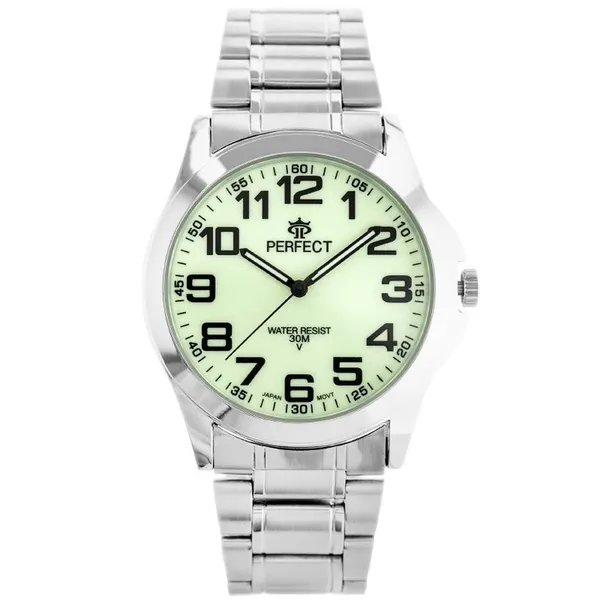 • Férfi kvarc karóra zöld fluoreszkáló számlappal, ezüst fém szíj
