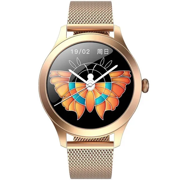• Női okosóra rozéarany acél szíjjal, pulzusmérő, IP68