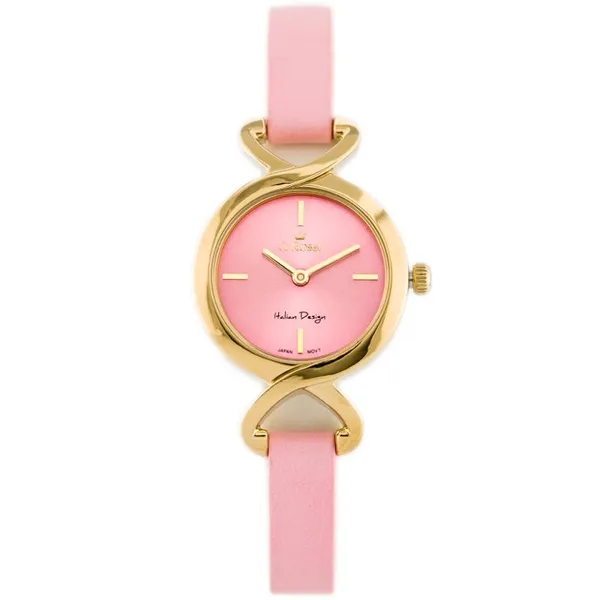 • Női кварc karóra rózsaszín számlappal, arany tok, bőrszíj