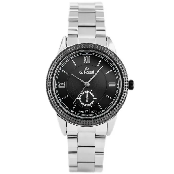 • G. Rossi női kvarc karóra, fekete számlap, ezüst fém szíj