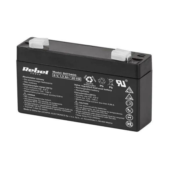 • 6 V 1,3 Ah zselés akkumulátor, gondozásmentes, szivárgásmentes