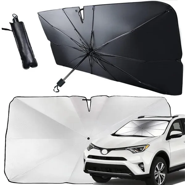 • Esernyő formájú UV autó szélvédő napellenző, fekete 120×70 cm