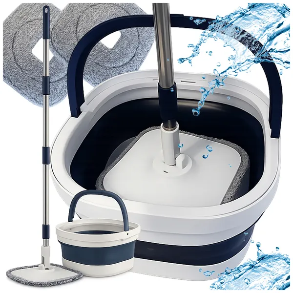 • 360° forgó lapos felmosó szett összecsukható vödörrel, 2 mikroszálas pofával