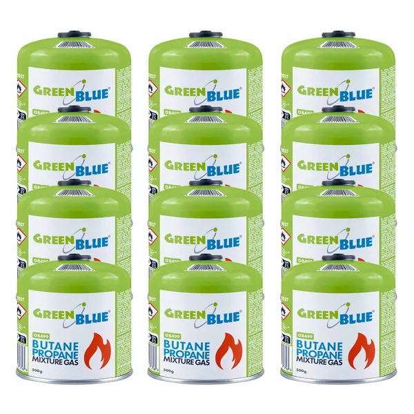 • 12 db 500 g-os EN417 menetes (7/16) propán–bután gázpatron