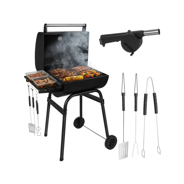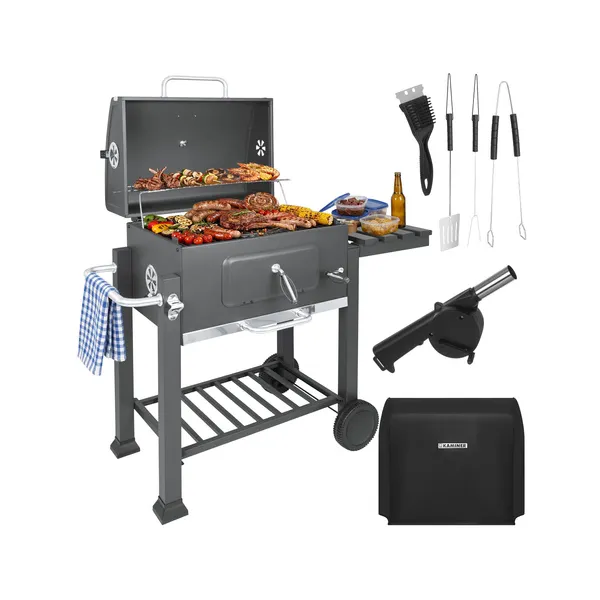 • Kerti faszenes grill fedéllel, öntöttvas ráccsal, hőmérővel 116x70x110 cm