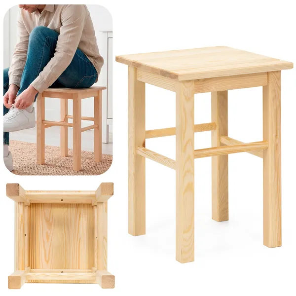 • Natúr fenyőfa négyzetes sámli 30×30×43,5 cm, 120 kg teherbírás