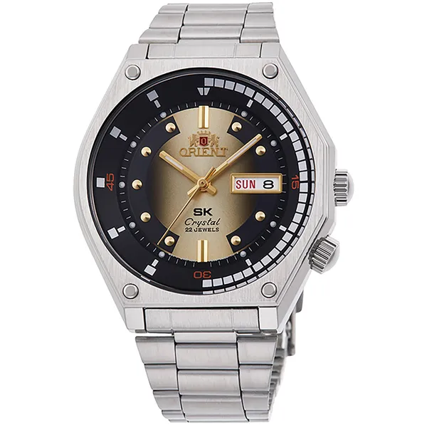 • Orient Revival Neo 70s férfi automata karóra, fekete-arany számlap, acél