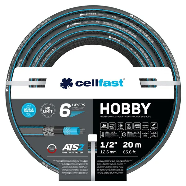 • Cellfast Hobby 1/2″ 20 m 6 rétegű, csomómentes kerti locsolótömlő