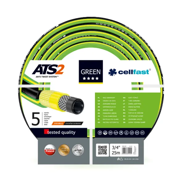 • Cellfast Green ATS2 kerti locsolótömlő 3/4″ 25 m, 5 rétegű