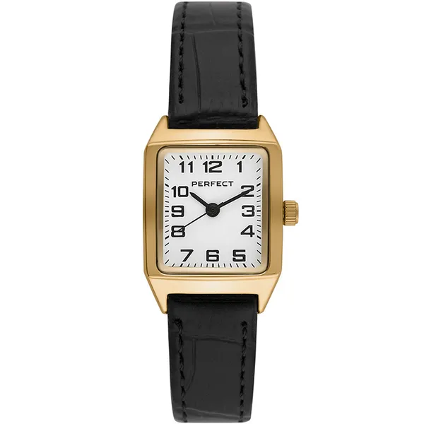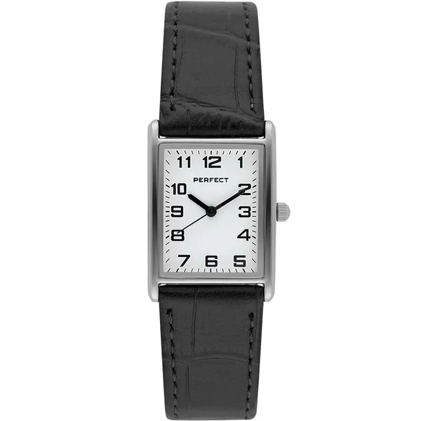 • Perfect női karóra fehér számlappal, fekete bőrszíjjal, 26 mm