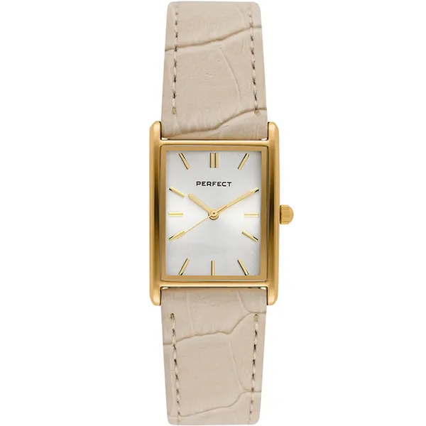 • Női karóra arany színű tokkal, ezüst számlappal, bézs bőrszíjjal