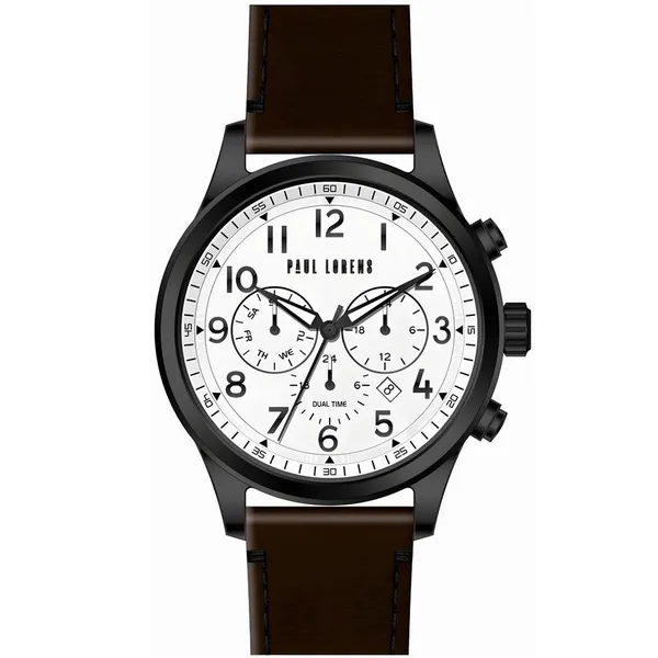 • Paul Lorens férfi karóra, fehér számlap, barna bőrszíj, WR30