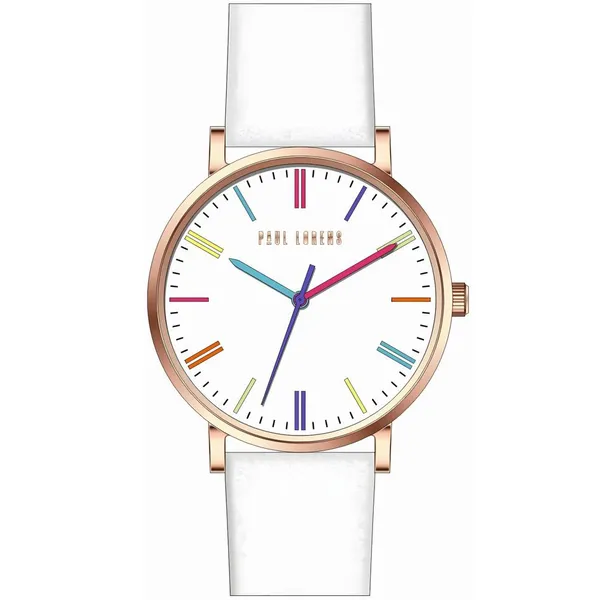 • Paul Lorens női karóra 41 mm, fehér bőrszíj, rózsaarany tok