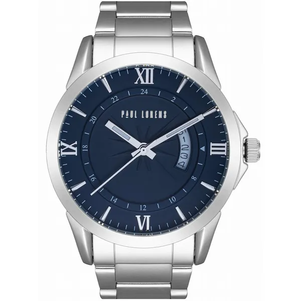 • Paul Lorens férfi kvarc karóra, ezüst acél szíj, 45 mm, WR30
