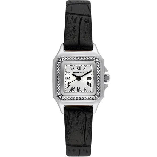• Perfect női karóra E405-01, ezüst számlap, fekete bőrszíj