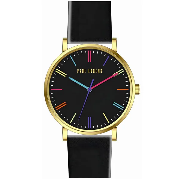 • Paul Lorens női karóra 41 mm fekete bőrszíjjal, arany tok