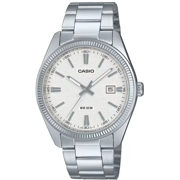 • Férfi kvarc karóra, fehér számlap, ezüst acél szíj, 50 m