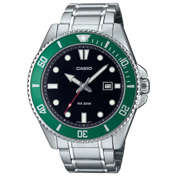 • Casio férfi kvarc búváróra, zöld számlap, acél szíj, 200 m