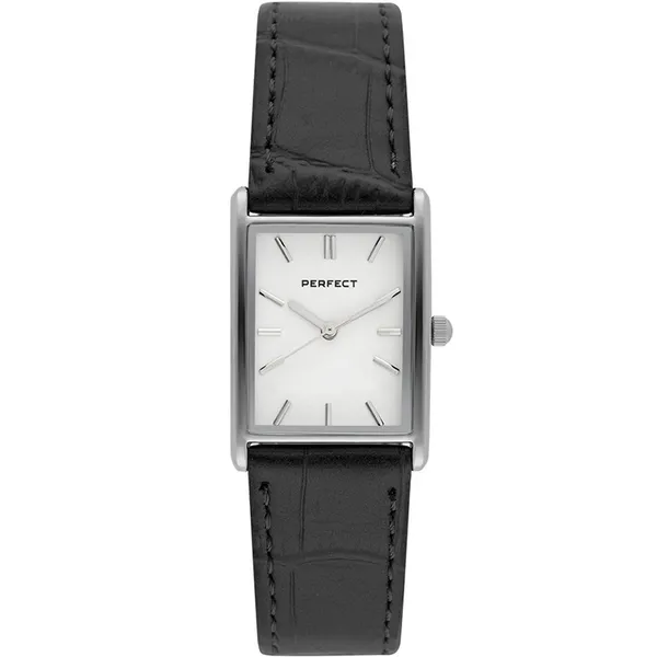 • Perfect női karóra, fekete bőrszíj, fehér számlap, 26 mm, díszdobozzal