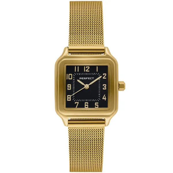 • Perfect női кварc karóra fekete számlappal, aranyszínű szíjjal