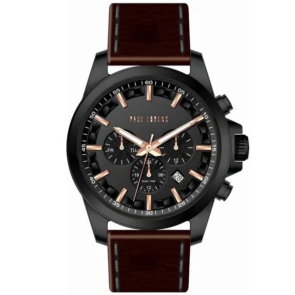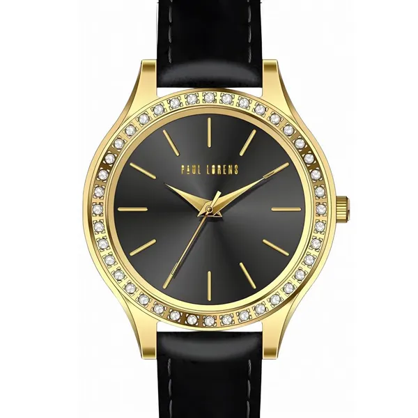 • Paul Lorens női karóra fekete bőrszíjjal, arany tok, 34 mm
