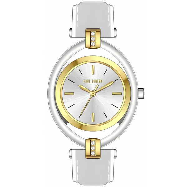 • Paul Lorens női kvarc karóra, ezüst számlap, fehér bőrszíj