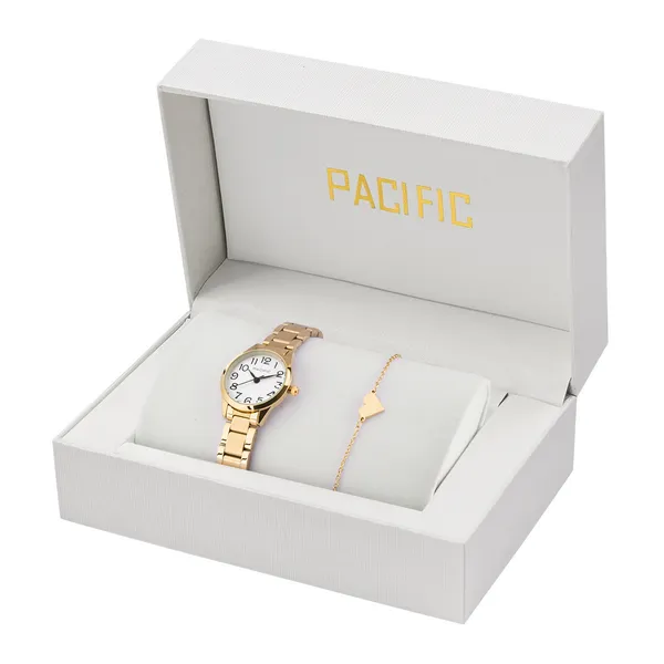 • Pacific női ajándékszett arany karóra fehér számlappal