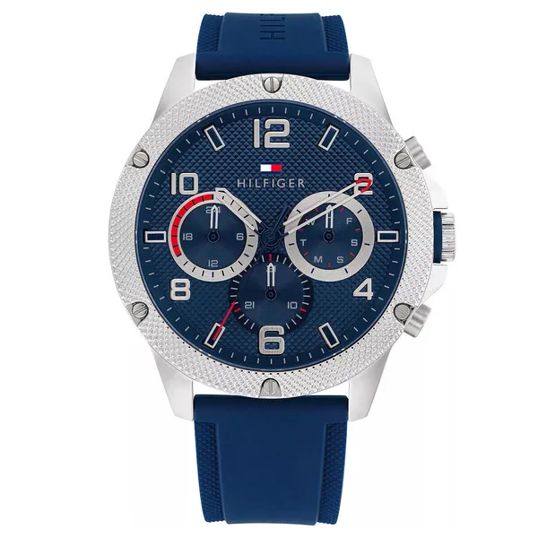 • Tommy Hilfiger férfi kvarc karóra, sötétkék számlap, szilikon szíj