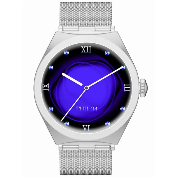 • Női okosóra ezüst acél szíjjal, Bluetooth 5.2, IP68, 1,27”