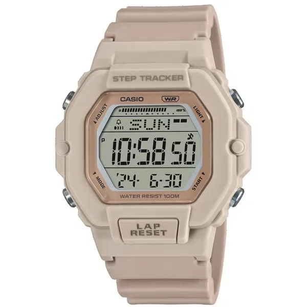• Női digitális karóra, bézs, WR100, kvarc, LED, stopper