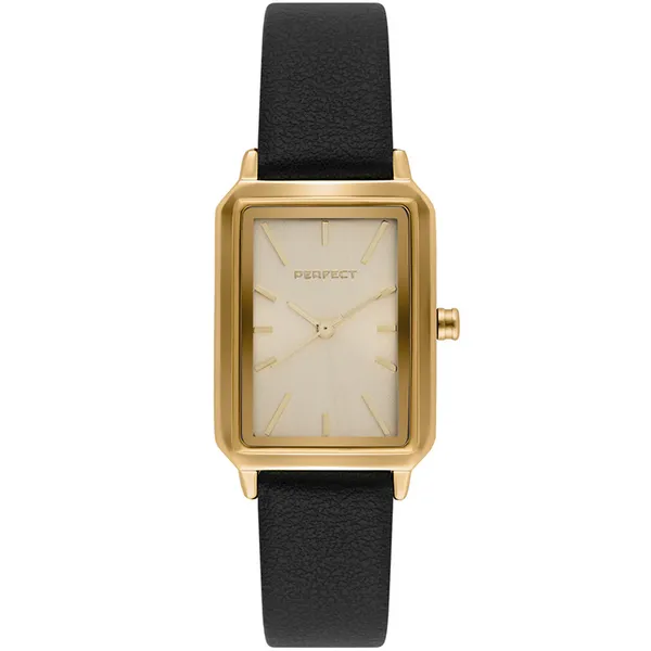• Perfect női karóra arany számlappal, fekete bőrszíjjal, dobozzal