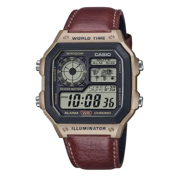 • Férfi karóra Casio AE-1200WHL-5A, bőrszíj, világidő, WR100