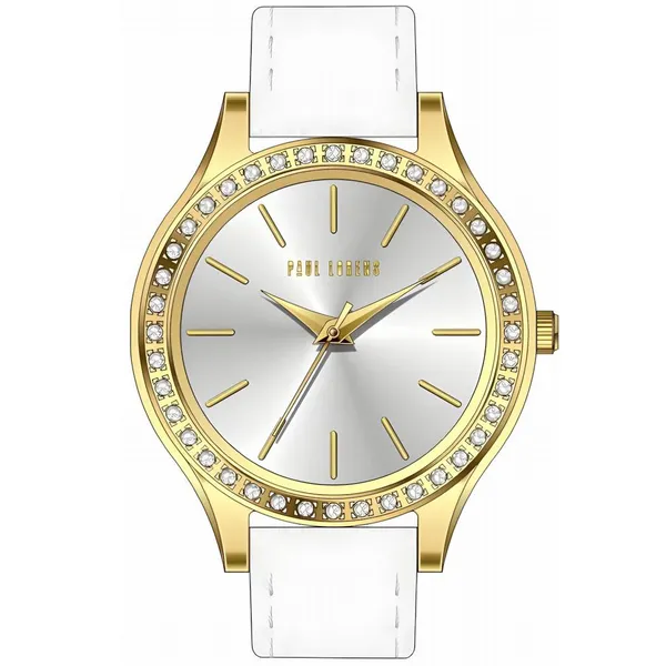 • Paul Lorens női kvarc karóra, fehér bőrszíj, ezüst számlap, 34 mm