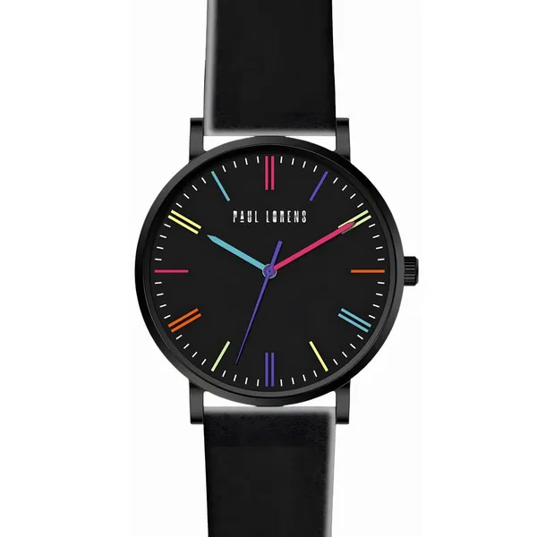 • Paul Lorens női karóra 41 mm, fekete bőrszíj, fekete számlap