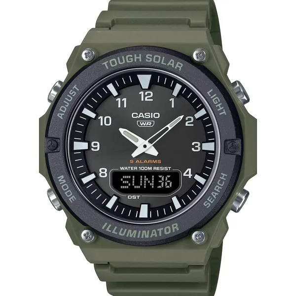 • Férfi Casio analóg-digitális szolár karóra WR100 fekete-zöld
