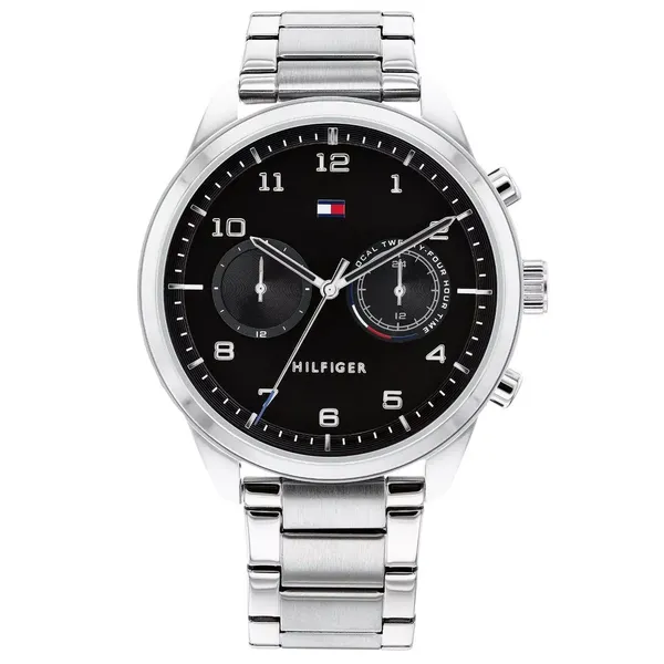 • Tommy Hilfiger férfi kvarc karóra, fekete számlap, ezüst acél