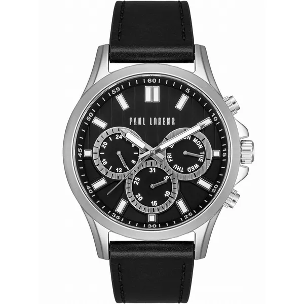 • Férfi karóra Paul Lorens PL11706A2-1A1 fekete bőrszíjjal