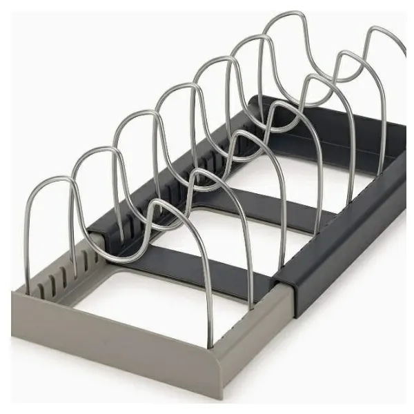 • Állítható serpenyő- és fedőtartó rendszerező, 7 rekeszes, szürke