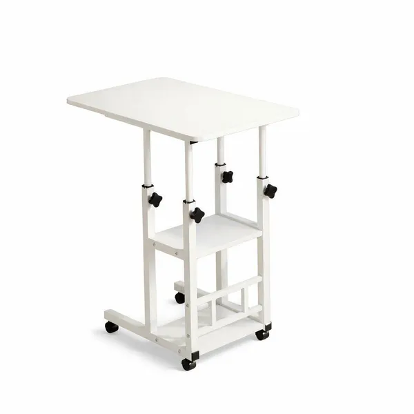 • Fehér állítható mobil laptopasztal polcokkal, 80 x 40 cm