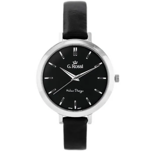 • G. Rossi női kvarc karóra fekete bőrszíjjal, fekete számlappal