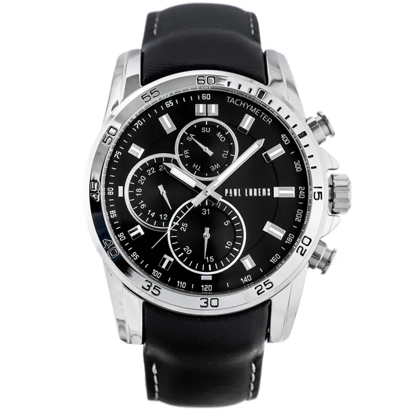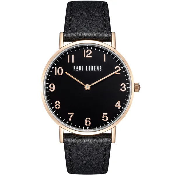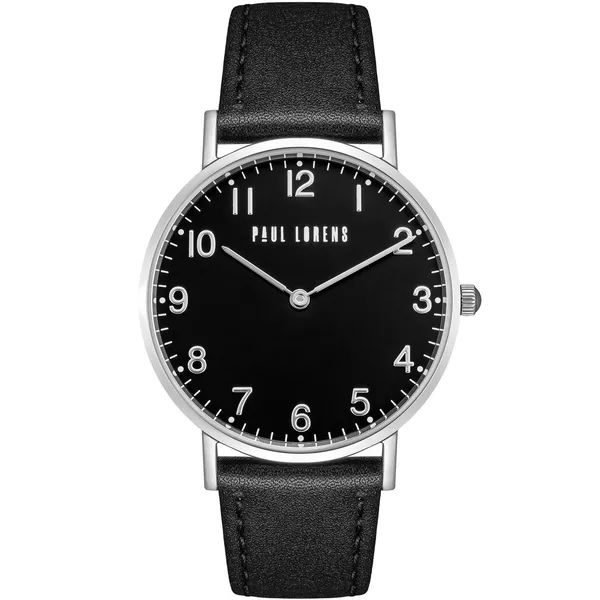 • Paul Lorens női karóra fekete bőrszíjjal, fekete számlappal
