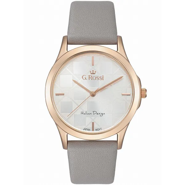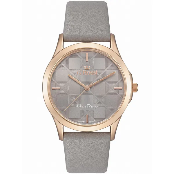 • Női kvarc karóra szürke bőrszíjjal, rózsaarany tokkal 38 mm