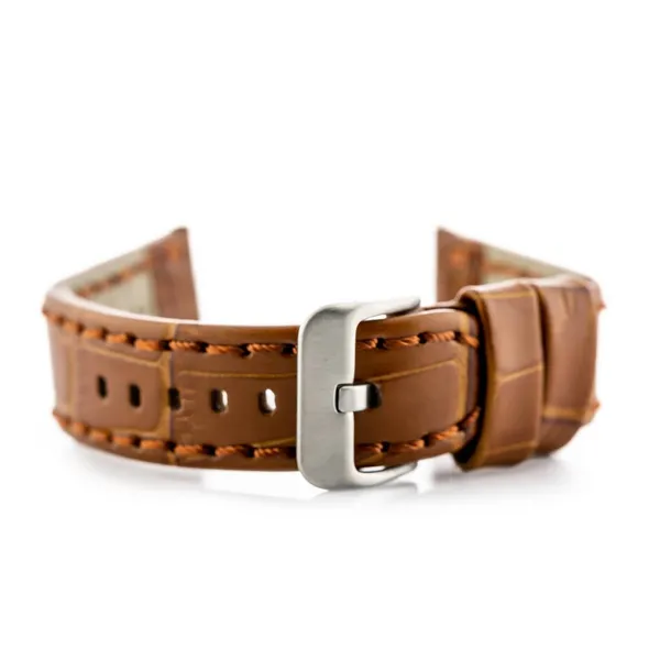 • Sötétbarna valódi bőr óraszíj ezüst csattal, 20 mm
