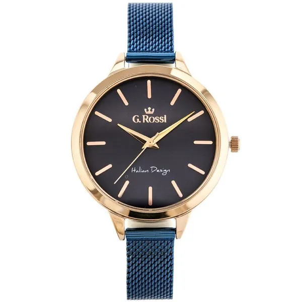 • Női kvarc karóra sötétkék számlappal, rózsaarany fém szíjjal