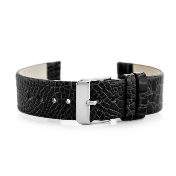 • Fekete természetes bőr óraszíj ezüst csattal, 22 mm