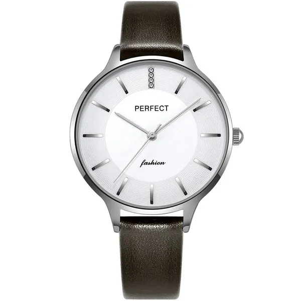 • Perfect női kvarc karóra, ezüst számlap, szürke bőrszíj, 36 mm