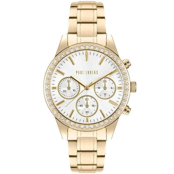 • Paul Lorens női кварc karóra, arany acél mesh szíj, fekete számlap, 42 mm