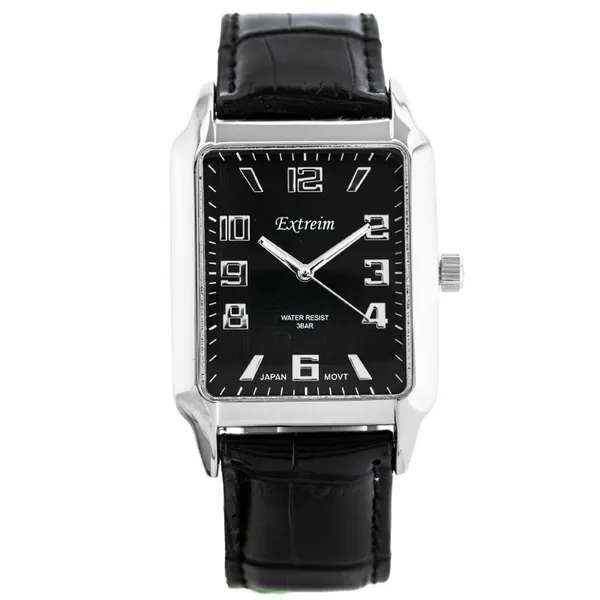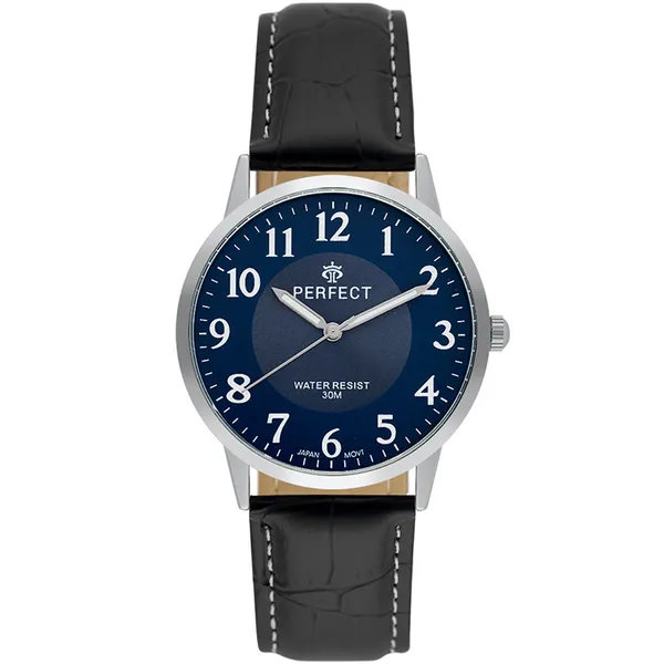 • Férfi karóra fekete szíjjal, kék számlappal, 3 ATM