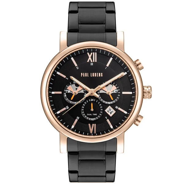 • Paul Lorens férfi karóra fekete számlappal, rozéarany acéltokkal