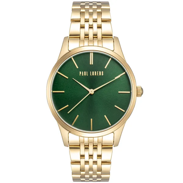 • Férfi kvarc karóra zöld számlappal, aranyszínű acél szíjjal